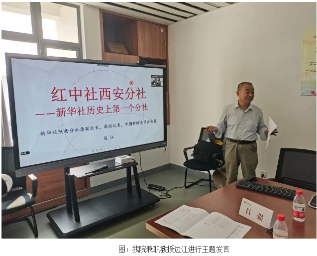 1936年12月12日张学良、杨虎城“兵谏”蒋介石的“西安亊变”发生后,周恩来代表中国共产党前往西安调停。在此期间,周于12月19日给在延安的毛泽东、博古发电报,决定成立了红中社西安分社(1937年1月随着总社在延安更名而改称新华社西安分社)。李一氓、陈养山、陈克寒、陈泊4位同志(史称红中社“四杰”)参加了西安分社的工作。他们将从西安七贤庄红军联络站秘密电台接收的来自陕北的新华社稿件和我党关于解决西安亊变的有关重要文件刻版油印,发送给西安的各个媒体和党政军机构,为和平解决“西安事变”,促成国共合作,建立全民族抗日统一战线,做出了重大贡献。边江老师以翔实的史料,图文并茂地对新华社历史上第一个分社的产生、构成、工作情况及历史贡献,进行了全面介绍,并展示了最新发现的西安分社稿件采用“落地”的当亊人回忆第一手史料,使这一新闻史课题研究链条更臻完备和深入。