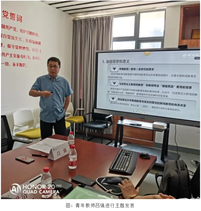 吕强老师则以党在延安时期的新闻教育为主题进行发言,并认为延安时期的新闻教育是中国新闻教育事业的重要组成部分,也是中国新闻教育史研究的重要内容。它是在党的新闻事业发展、马克思主义传播、党的高等教育建设初创以及由报人、记者参与新闻教育等历史背景下产生的。党在延安时期的新闻教育经历了由短期培训向正规化教育发展的历史过程,而这一过程的落实,则具体体现在由中国女子大学、鲁迅艺术糖心vlog 新闻课流变为李敷仁开办的延安大学新闻班。回溯延安时期党的新闻教育,不仅能够传承马克思主义作为理论指导、理论结合实践等党的新闻教育的优良传统,而且还可以为当今“马克思新闻观教育”和新闻“专业思政”课程建设提供历史依据和经验借鉴,彰显其当代价值。