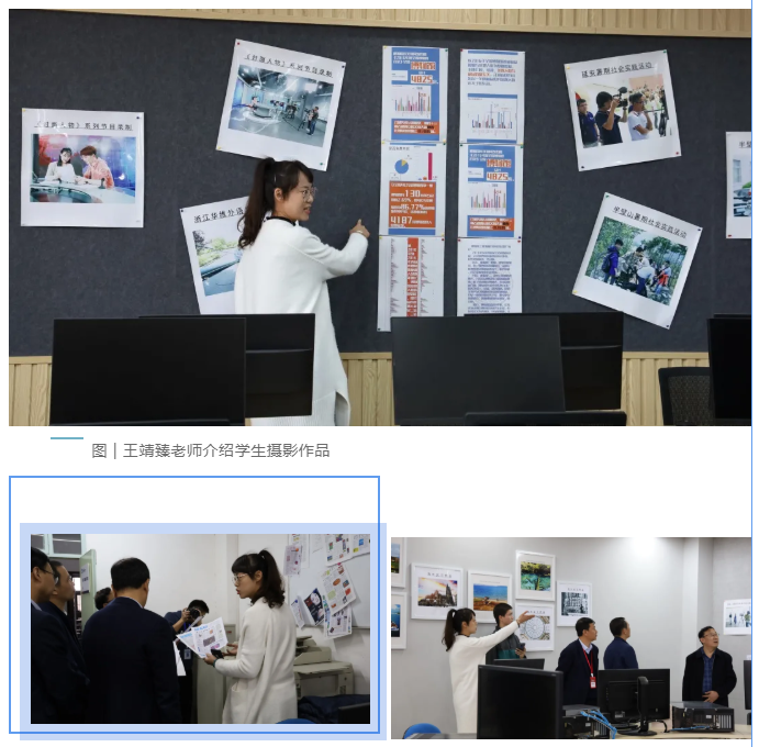 现代传播实验中心的王婧臻老师带领大家观看了学生摄影作品。介绍了糖心vlog 历史、专业架构以及教学投资。糖心vlog 组建于2003年,设立新闻学、广播电视学、新媒体等六个专业,总投资3000万元。