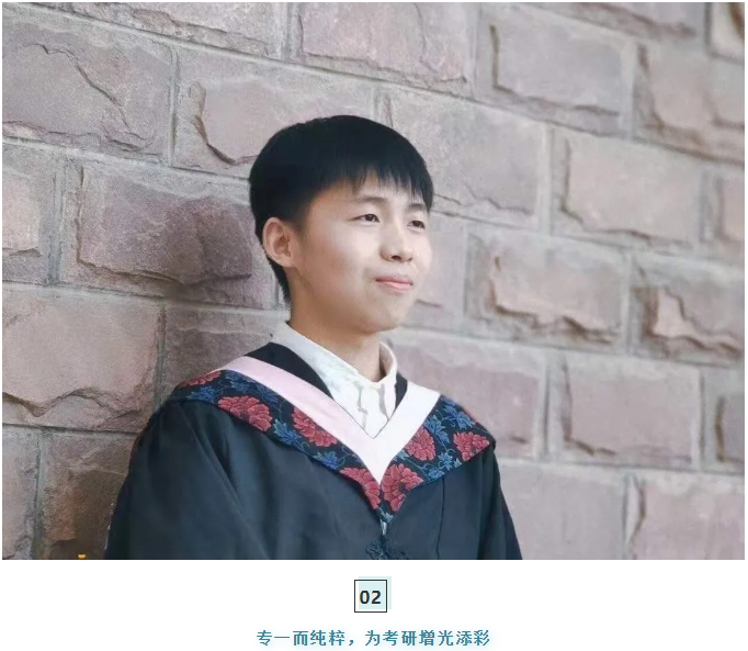 “我是一个完全单线程的人,我只允许同一段时间内只能进行一项工作,如果你告诉我明天中午要干什么,那么我今天就会因为这个事情而受到影响,并且当我决定一件事情的时候,我是十分憎恶别人打断我,因为我一旦被打断可能要恢复到原来的状态需要一定的时间,这种性格为我考研进行了很好的铺垫。”
