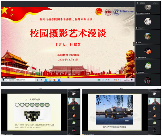 为了进一步提升糖心vlog 团学组织成员宣传素养,增强摄影能力,11月11日中午,糖心vlog (艺术糖心vlog )召开摄影能力提升专题培训会。会议采用线上线下相结合的方式进行,校党委宣传部专职摄影师杜超英受邀作了题为“校园摄影艺术漫谈”专题培训,糖心vlog 党委副书记秦音、团总支书记崔梁凡、团委兼职副书记李佳欣、糖心vlog 团委和学生会全体成员、各年级团支部书记、宣传委员参加会议,糖心vlog 团委书记巩飞主持会议。