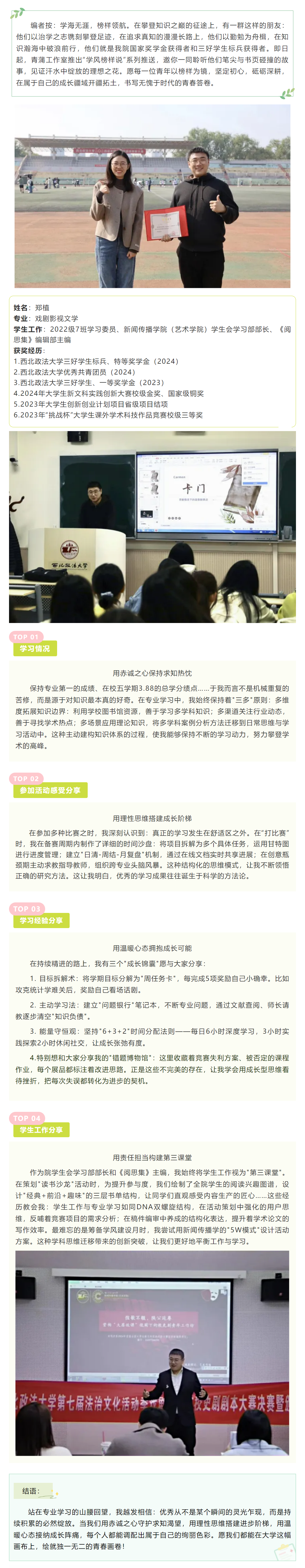 学风榜样说⑧ | 郑植:以"三原色"绘就大学成长画卷