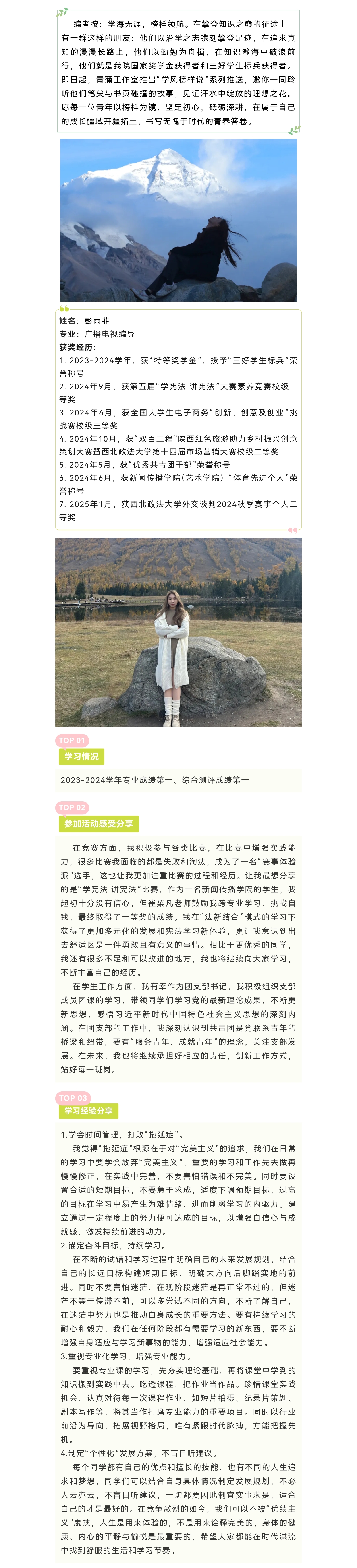 学风榜样说⑨ | 彭雨菲:笃志前行,深耕专业领域