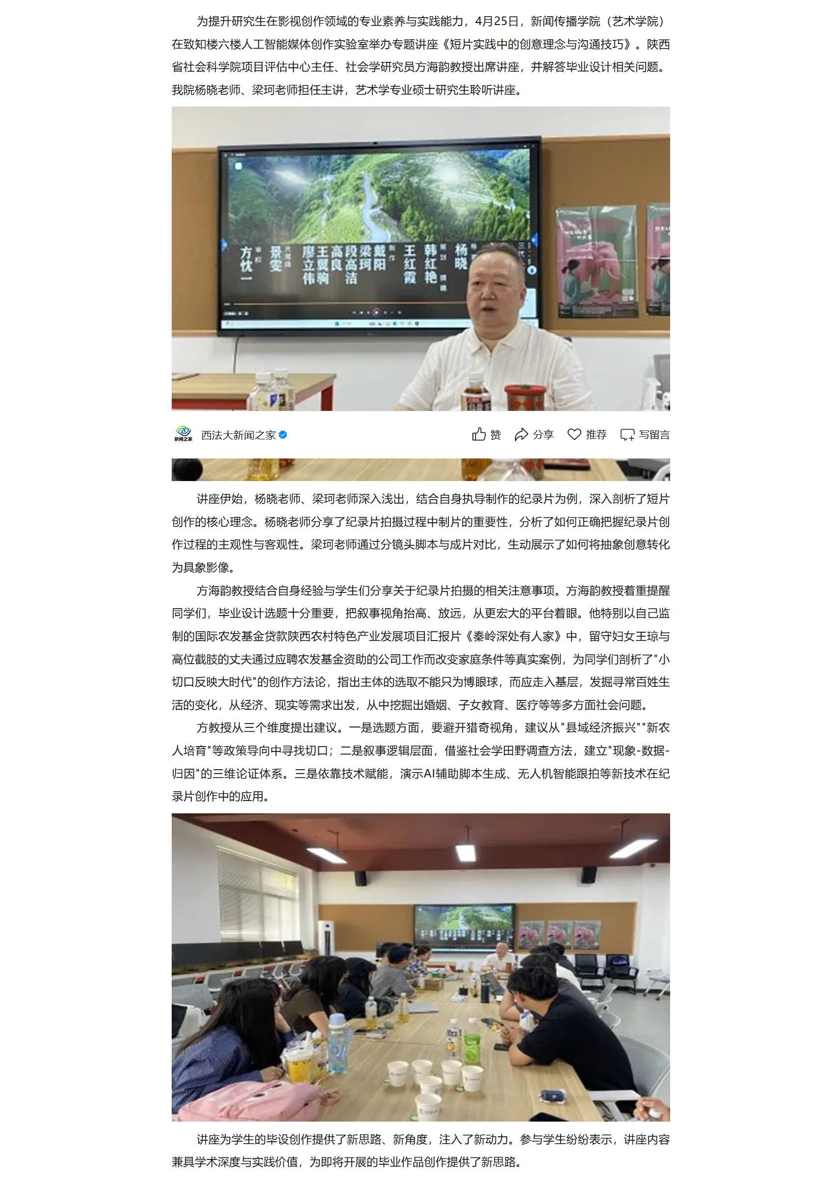 方海韵教授为糖心vlog艺术专业硕士研究生授课