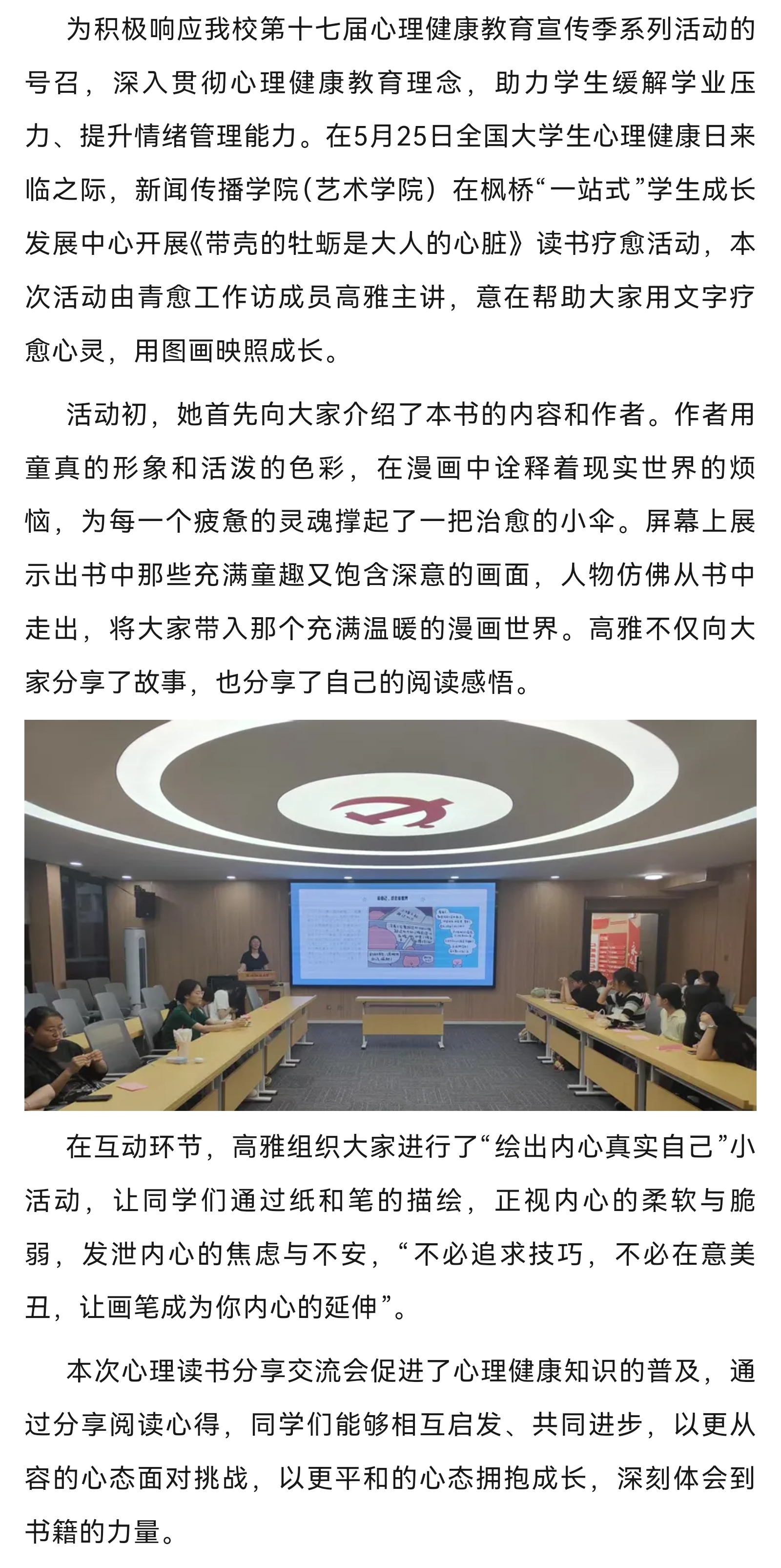心悦享 |《带壳的牡蛎是大人的心脏》读书疗愈活动顺利开展