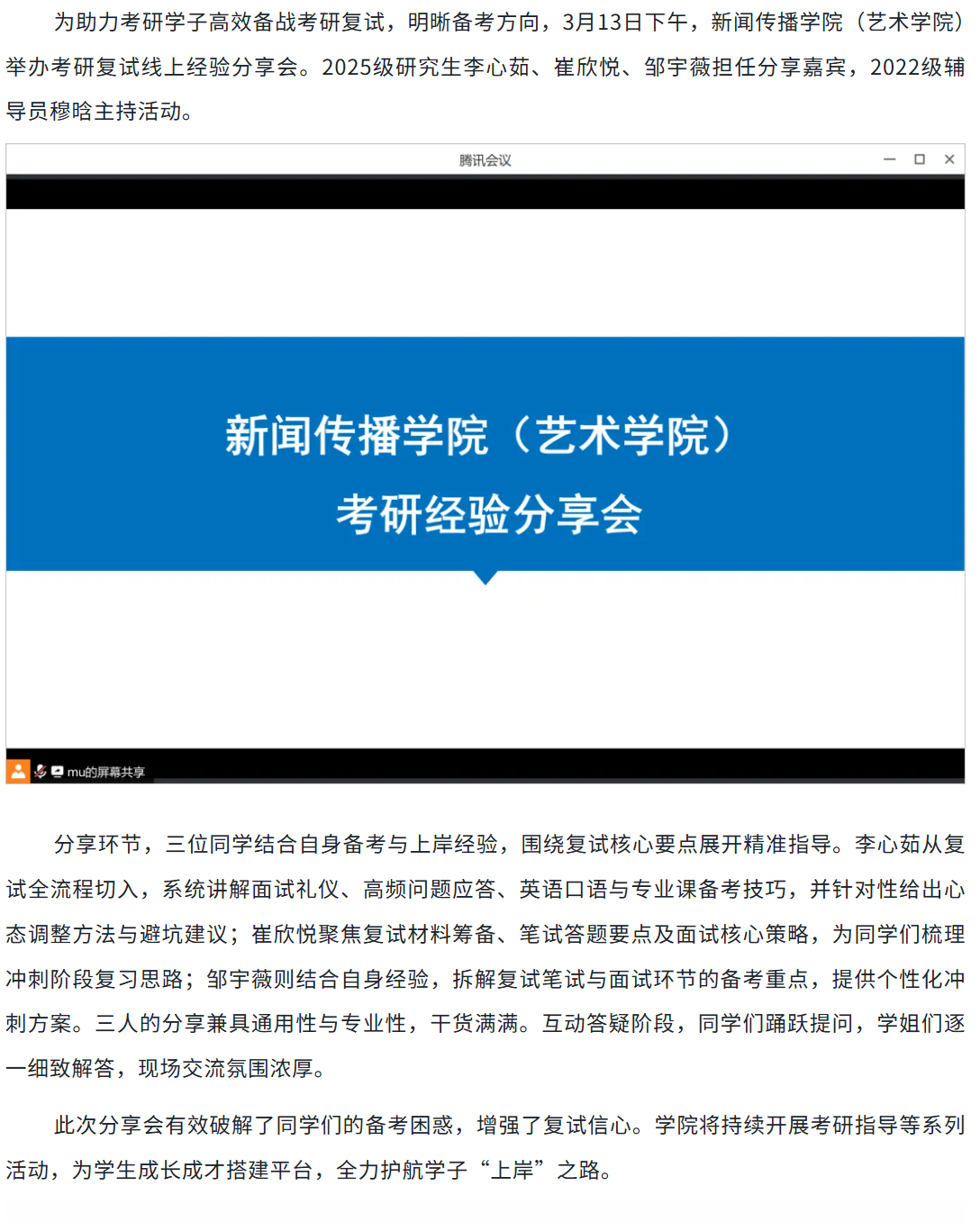 研途领航,复试决胜!糖心vlog (艺术学院)开展考研复试经验分享会