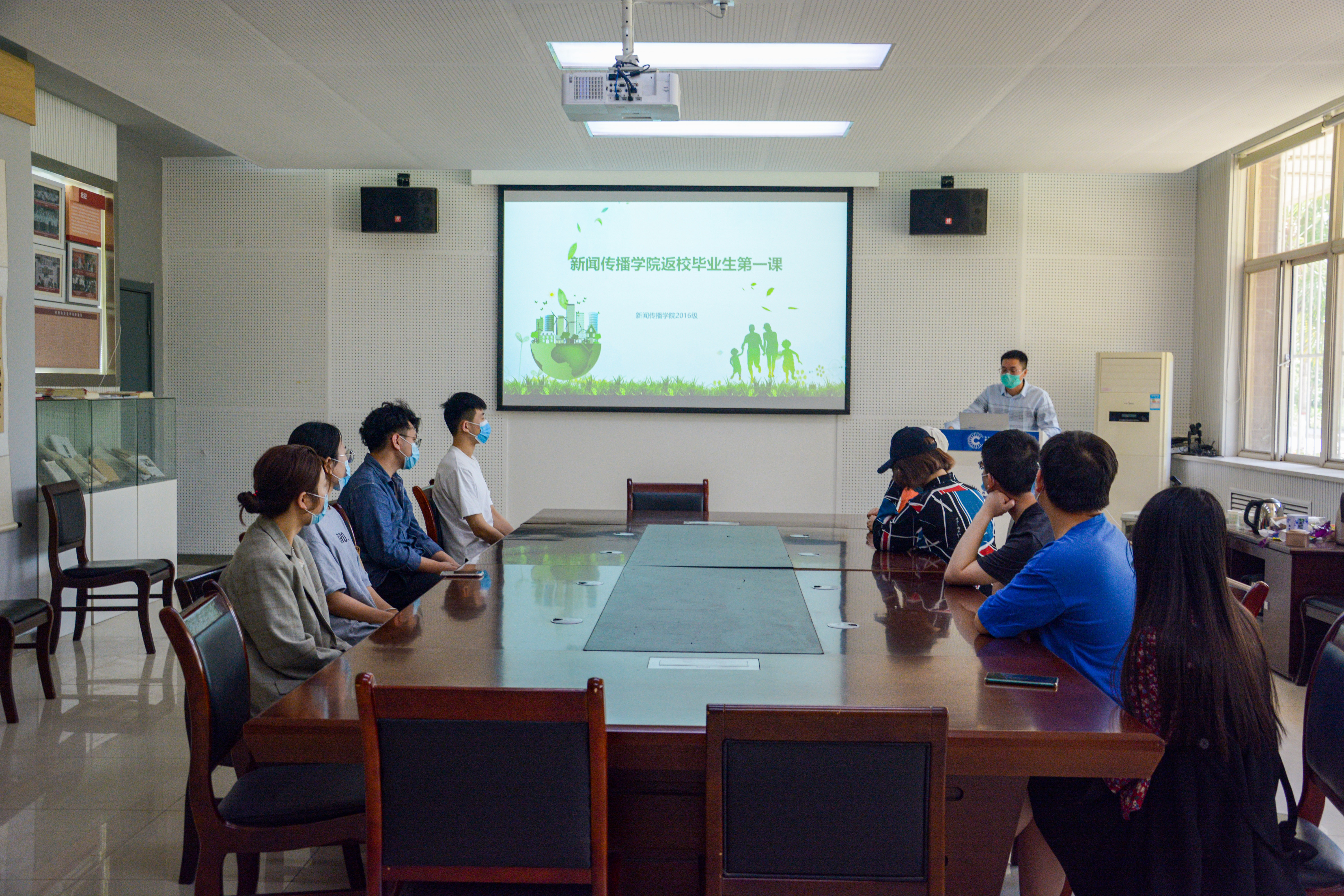 为切实做好毕业年级学生返校后的疫情防控、心理疏导、就业指导、学习生活等工作,根据我校《疫情防控和春季学期开学返校综合协调工作方案》和糖心vlog《本科生返校与健康管理工作实施方案》要求,2020年5月18日,糖心vlog2016级辅导员王亮老师在长安校区何微纪念馆向返校的2020届毕业生们讲返校复学第一课。