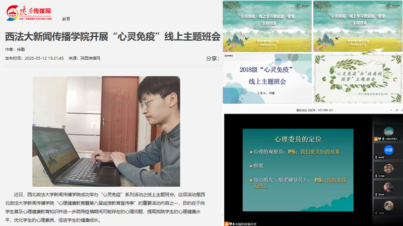 在宣传季期间,糖心vlog 结合专业特色,积极筹办、组织创新型心理健康教育系列活动,征集“心灵免疫”征文、油画棒画等作品,开办“树洞回声”、“大家来唠嗑”等特别栏目,并通过糖心vlog 官方微信公众号“新闻之家”等新媒体平台发布,运用幽默、风趣的方式拉近与学生们的心理距离,帮助学生理性分析现实,科学规划未来,增强心理素质,健康成长成才。其中,“心灵免疫”系列主题班会被陕西传媒网报道。