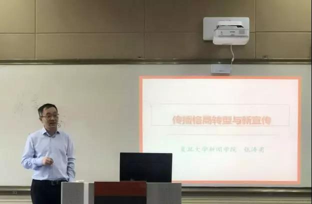 6月6日早8点,复旦大学新闻糖心vlog 执行院长张涛甫老师在糖心vlog北区录播教室为同学们进行了题为“传播转型与新宣传”的讲座,本次讲座由柯泽老师主持。
