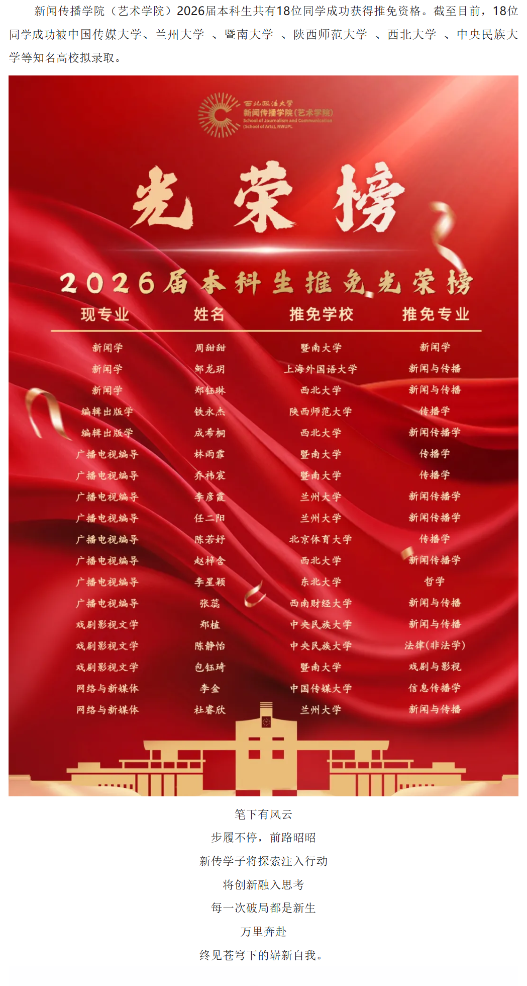 祝贺!糖心vlog (艺术糖心vlog )2026届本科生推免光荣榜来啦