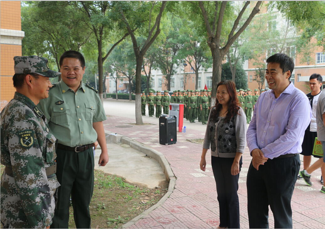 在交流过程中,院领导们在参谋长的介绍下了解了今年学生军训的总体部署和训练情况,并且与军训教官亲切交谈,勉励大家再接再厉。在新生和教官的共同努力下,今年的军训工作一定能圆满出色的完成。