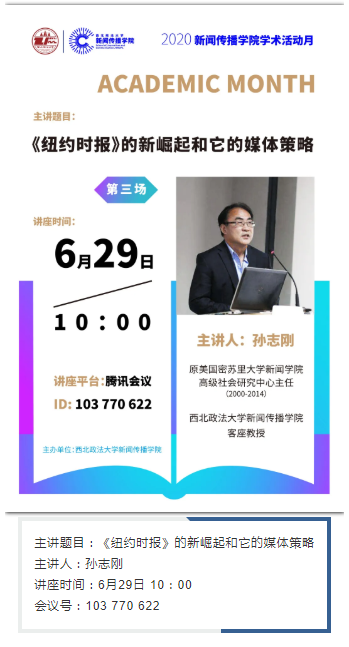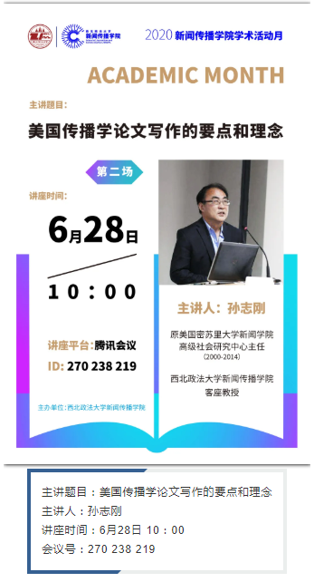 6月28日、6月29日,每天10:00,原密苏里大学新闻糖心vlog 高级社会研究中心主任孙志刚教授在腾讯会议开讲。届时欢迎各位同学参加。