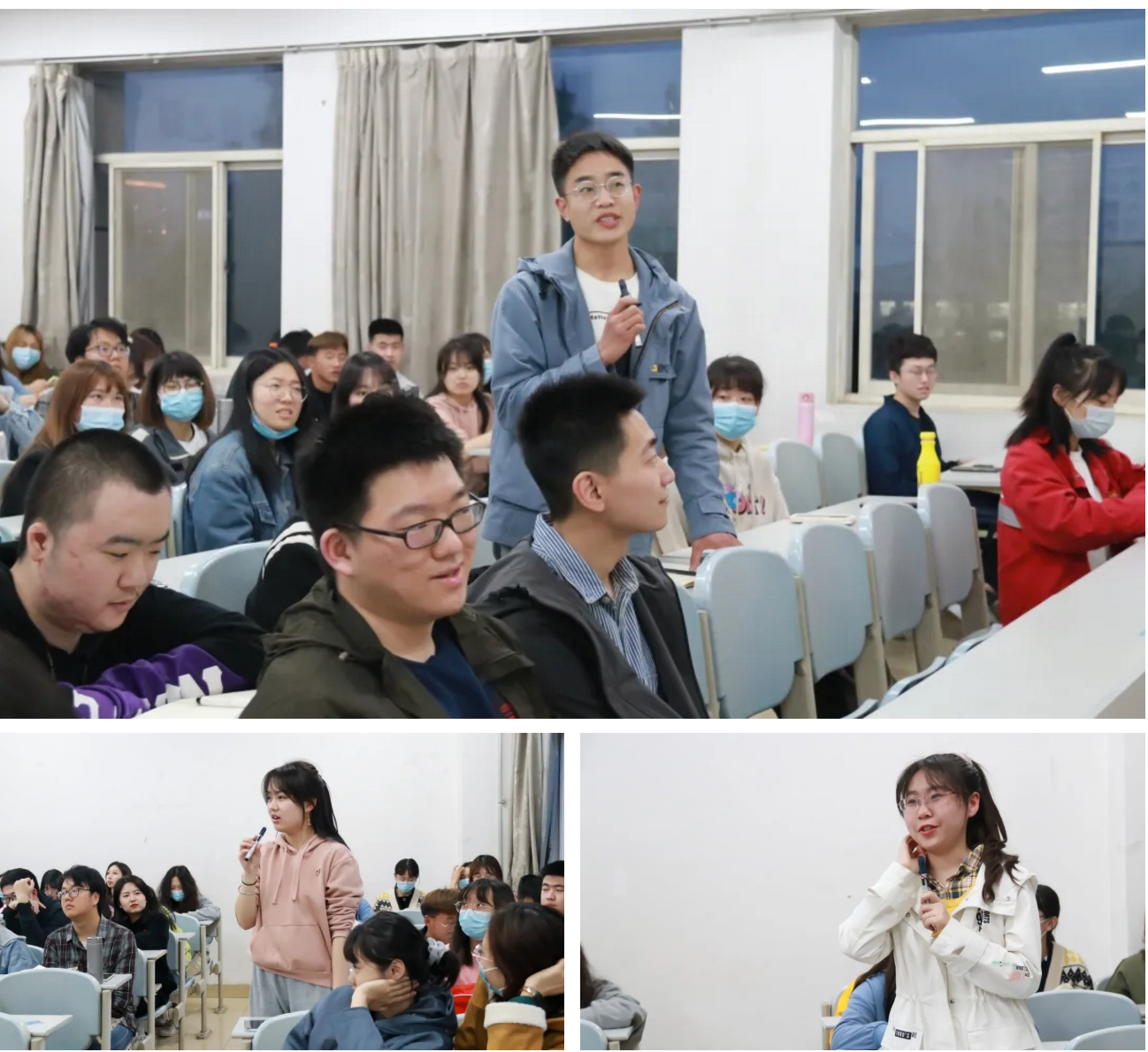 在提问环节中,同学们就英语、政治科目的复习方法,专业课资料的选择等相关问题向学长学姐寻求意见建议。发言同学就同学们的不同问题针对性地做出回答。分享会现场气氛高涨,同学互动积极。