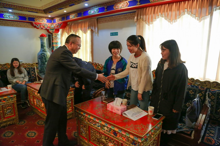 西藏传媒集团常务副总经理、西藏商报总编辑杨军录对同学们说道,“如果恨一个人就送他来西藏,因为那里是地狱;如果爱一个人也送他来西藏,因为那里是天堂。恨西藏的话,你可能有一千个伤心的理由,但是爱上西藏的话,其实不需要任何理由。”他表示西藏日报社愿意为大家提供一个留在西藏工作的机会,去释放你的爱或者恨,心有多大舞台就有多大,我们愿意为同学们提供和搭建一个良好的平台。