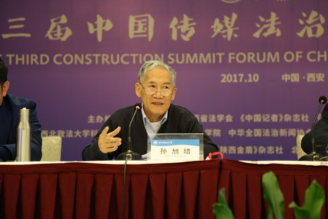 新闻与传播研究所原所长孙旭培教授进行了题为《感谢与希望》的发言,提出了学习研究的三点建议。指出在研究国家权力的同时,也要重视公民权利的研究,要让二者保持平衡,同时希望能够根据我国的现实情况,对传媒法治进行真正深入、深刻的研究。其次,应加强对网络道德现状和方式的研究,认为从道德方面治理网络要比法律治理的方式更重要。最后,还要重视思辨性研究。