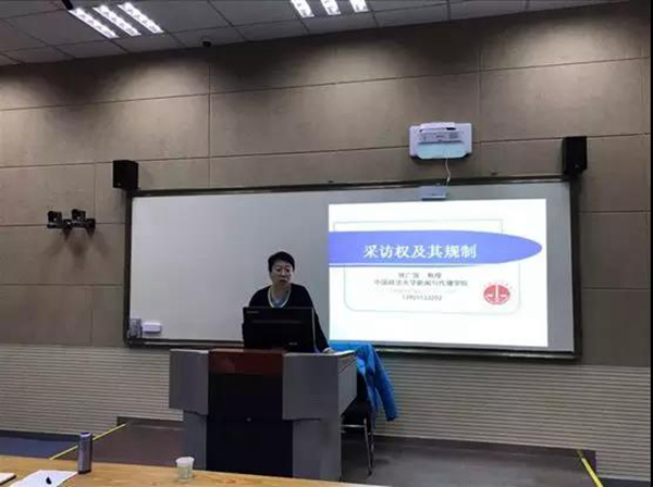 姚广宜教授从采访权概念、采访权的特点、侵犯采访权的表现和现代法律法规对采访权的规制这四个方面为在场师生作了一场十分精彩的讲座。