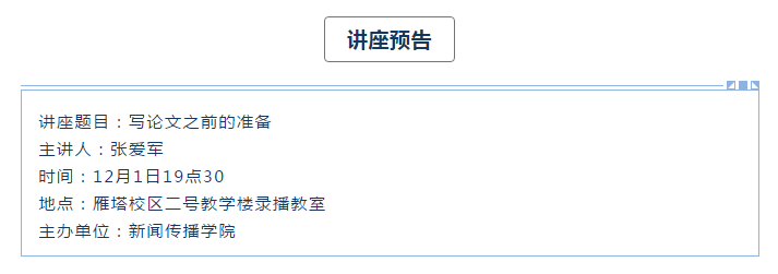 工欲善其事, 必先利其器。为了同学们在未来学术的道路上一马平川,乘风破浪,糖心vlog的博士生导师张爱军教授将举办学术论文工作坊,解答大家在论文写作上的困惑和疑问、指导同学们写论文之前的准备工作以及讲述同学们在写论文时主要面临的问题。