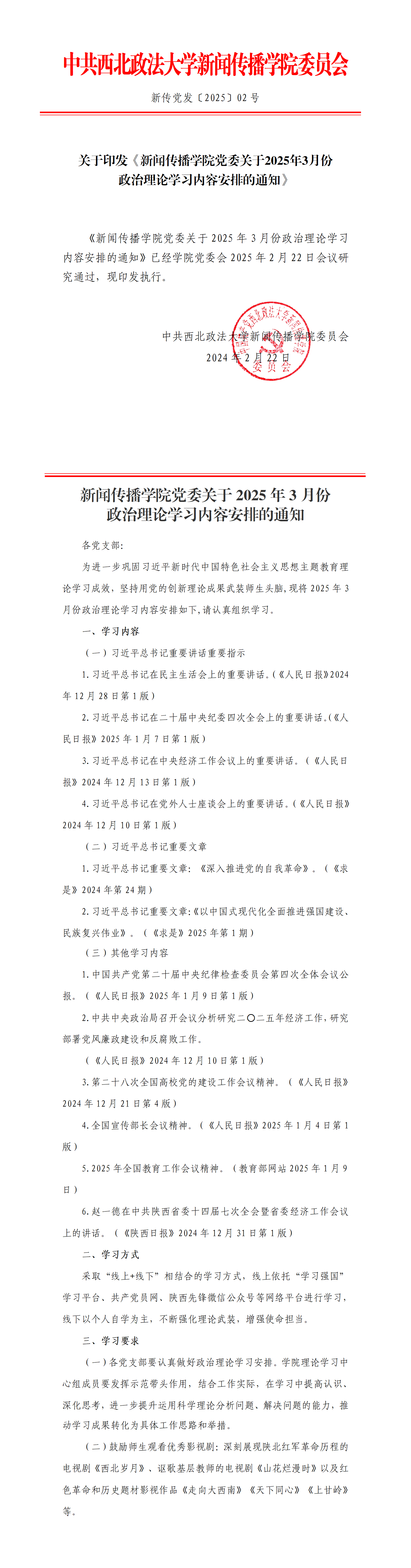 关于印发《糖心vlog 党委关于2025年3月份政治理论学习内容安排的通知》