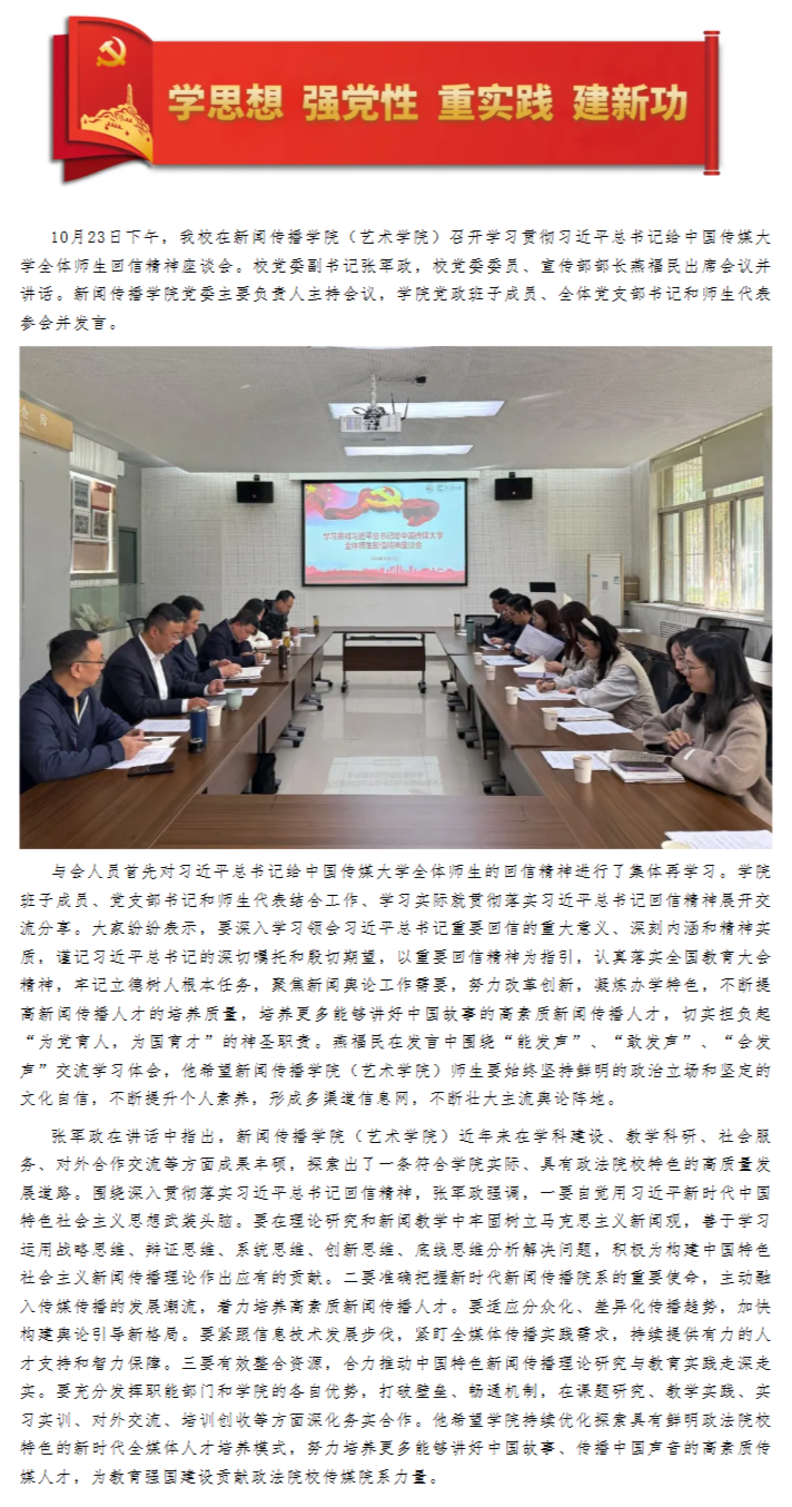 我校召开学习贯彻习近平总书记给中国传媒大学全体师生回信精神座谈会