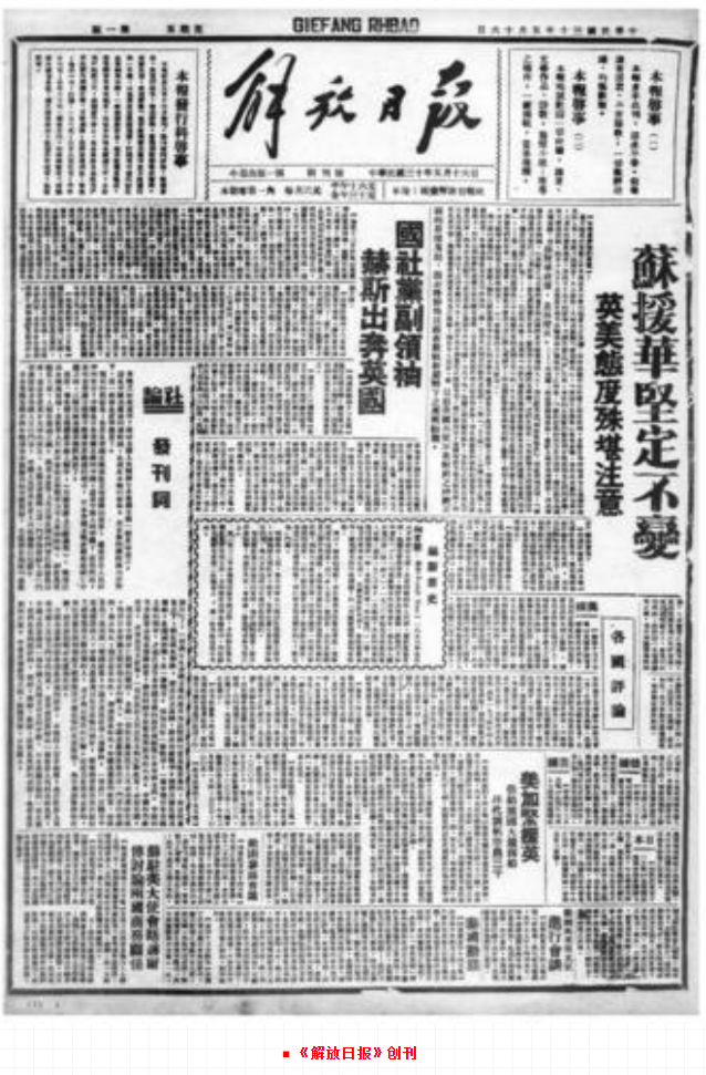 1941 年5 月16 日,中共中央的机关报《解放日报》在延安创刊,这是在抗日革命根据地出版的第一份铅印对开大型日报,也是抗日战争时期到解放战争初期革命根据地内出版的最重要的报纸。《解放日报》是中国中共中央的机关报。新中国成立后,《解放日报》成为中共上海市委机关报,日发行量55万份。