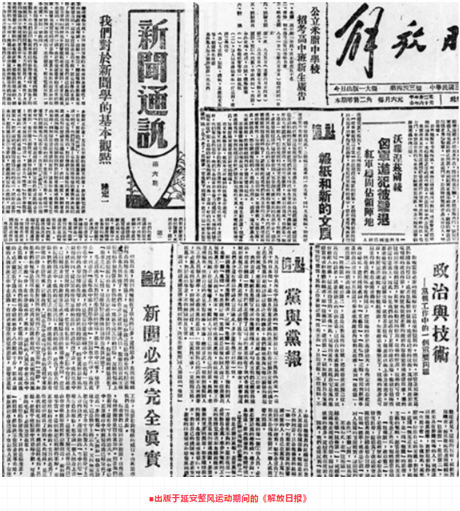 1942年全党开始整风。这次整风运动是中国共产党在全党进行的一次破除迷信解放思想的运动,也是一次马列主义和中国革命具体实践相结合的教育运动。其主要任务是反对主观主义以整顿学风,反对宗派主义以整顿党风,反对党八股以整顿文风,从思想上清算党内历次“左、右”倾错误并肃清其流毒。1942 年 2 月初,毛泽东在延安先后作了《整顿党的作风》和《反对党八股》的报告,为党的宣传工作特别是新闻界的整风运动指明了方向。3 月16 日,中共中央宣传部发出《为改造党报的通知》(下称《通知》),要求各地根据整风精神来检查报纸的党八股现象。作为这次党报改革的纲领性文件,《通知》还阐明了一系列极其重要的党报理论,其中包括“全党办报”的方针,党报的内容、版面及主要任务,大力加强党报编辑部的工作,提升党报的战斗性、通俗化等。《通知》发出后,从《解放日报》到各新闻单位、从延安到各抗日根据地,掀起了整风和检查“党八股”的热潮。