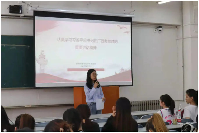 刘璇同志领学了习近平总书记在广西考察时的重要讲话精神和习近平总书记给《文史哲》编辑部全体编辑人员回信。刘璇同志说到,习近平总书记的讲话和回信为进一步深化党史学习教育指明了方向,提供了遵循,我们要认真学习贯彻习近平总书记的重要讲话精神,坚定理想信念,砥砺革命意志,从红色历史中汲取精神力量,增强信仰、信念、信心,增强做中国人的骨气和底气。