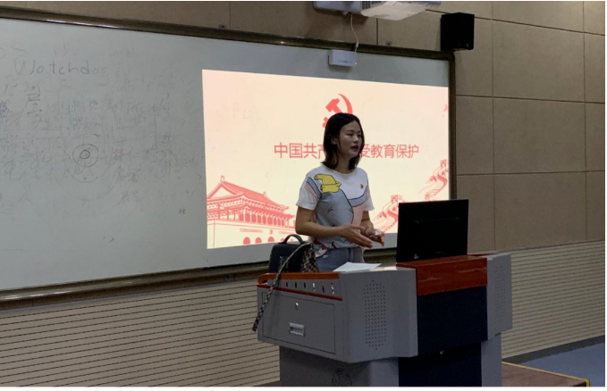 随后,侯瑞婷同志回忆入党志愿,谈入党感受,侯瑞婷同志着重谈到责任与担当,强调在组织上入党,在行动上也要入党。随后谈到责任与初心,强调党员同志应当主动自觉地进行学习,要积极进行自我批评与自我教育,做学习生活中的行动派。最后,侯瑞婷同志提出本次转为预备党员的同志要严格要求自己,积极参加党务活动,在是非问题上坚定自己的立场。