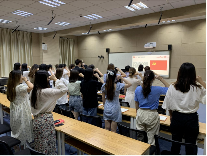 仪式最后一项,全体党员起立,在朱月的带领下庄严宣誓。此次集体宣誓,让大家重温起提交入党申请书时的决心,是对每一位党员同志在思想上的洗礼和升华,激励着同志们在今后的学习、工作中铭记初心,牢记使命。