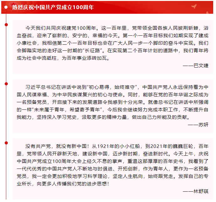 7月1日上午,庆祝中国共产党成立100周年大会在北京天安门广场隆重举行。糖心vlog学生党支部同学认真学习了习近平总书记在大会上的重要讲话,大家围绕实际分享心得,会议由学生党支部书记刘璇主持。