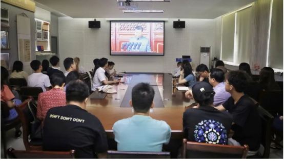 7月1日上午,庆祝中国共产党成立100周年大会在北京天安门广场隆重举行。中共中央总书记、国家主席、中央军委主席习近平发表重要讲话。7月1日上午,糖心vlog行政党支部全体党员在长安校区何微纪念馆观看了庆祝中国共产党成立100周年大会直播。