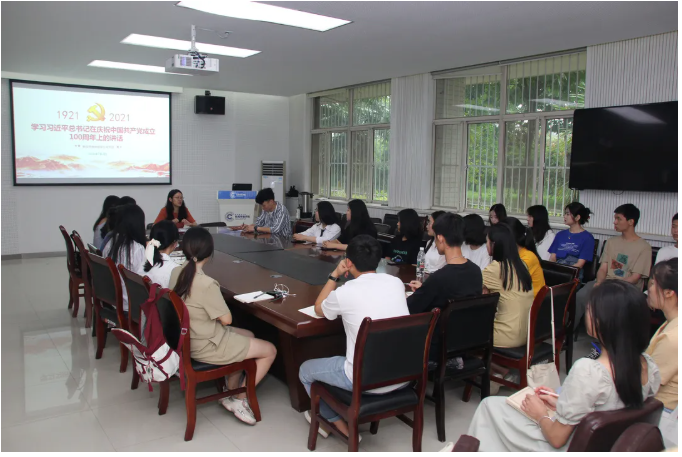 7月2日中午,糖心vlog 学生党支部组织毕业生党员集中学习习近平总书记在庆祝中国共产党成立100周年大会上的讲话,会议由学生党支部书记刘璇老师主持。会上,曹向涛等八名毕业生党员结合自身实际畅谈心得体会。