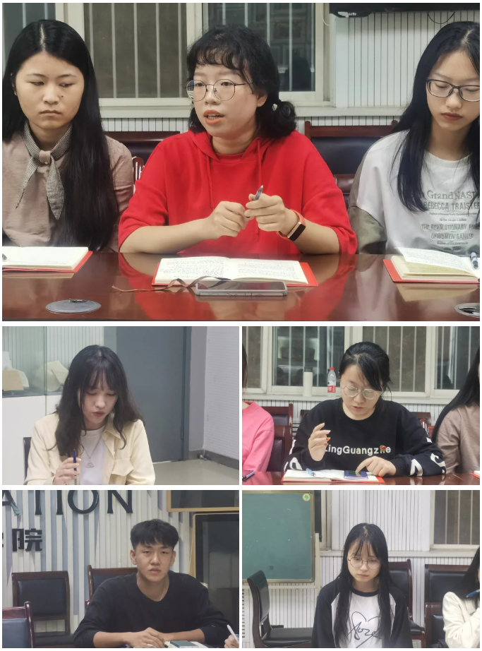 随后,支部党员们结合本次学习内容和自身体会进行分组讨论,并分享心得感悟。龚远洋子同志从优秀民间艺术传承切入,表示弘扬优秀民间艺术可以用新闻传播手段来创意宣传,成为传统文化和现代生活的连接者,成为优秀民间艺术和非物质文化遗产的传承者;李思妤同志从教育方面谈到,我们作为青年学生,要坚定在学习教育中传承红色基因,将爱党、爱国、爱人民、爱社会主义的情感贯穿于人生价值观中,努力向德智体美劳全面发展努力;郑卓然同志从红色资源方向出发,表示党的光荣传统和优良作风是我们宝贵的精神财富,作为青年大学生,要时刻不忘初心,牢记使命,正确把握红色资源,展现民族风采;郑与奇同志发出感叹,要为人民做事,着眼全国人民的发展,要关注基层群众的利益,为国家的发展奋斗,贡献自己的力量!杨柳晶同志结合自身所见所感,她从乡村振兴的角度去思考,表示现在仍然有一部分农民生活在水深火热之中,若日后我们深入基层,希望可以多帮助他们。