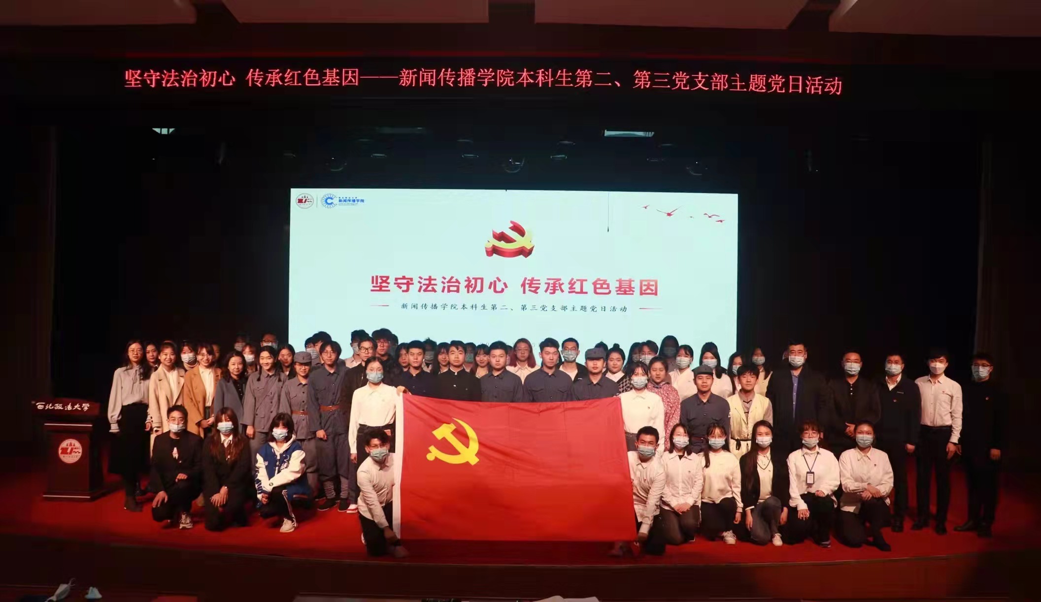 2021年11月5日上午,糖心vlog 本科生第二、第三党支部在满天星报告厅开展了“坚守法治初心,传承红色基因”主题党日活动。糖心vlog 党委书记刘渊、院长孙江、院党委副书记秦音、各年级辅导员、学生党员代表、入党积极分子等40余人参加本次主题党日活动。活动由糖心vlog 第二党支部宣传委员、糖心vlog 团总支书记、辅导员巩飞主持。