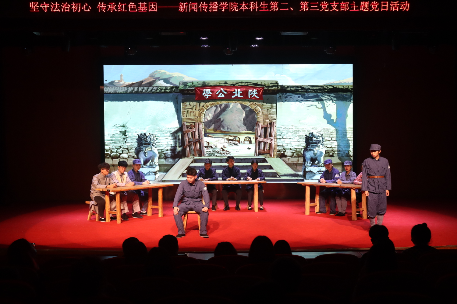师生以1937年发生在“抗大”和“陕公”之间的“黄克功案”为素材,自编自导自演红色法治话剧《庄严的审判》,向世人庄严宣示“共产党人犯法,无论以前功劳多么显赫,都必须执行比一般人更加严格的法律”。今年是中国共产党成立100周年,全党集中开展党史学习教育。糖心vlog党委认真学习贯彻习近平总书记在党史学习教育动员大会上的重要讲话精神,深入贯彻落实习近平总书记《用好红色资源,传承好红色基因,把红色江山世世代代传下去》重要文章精神,把《庄严的审判》再次搬上舞台,将理想信念教育、法治教育、红色文化教育紧密结合,大大增强了党史学习教育的鲜活性、感染力。