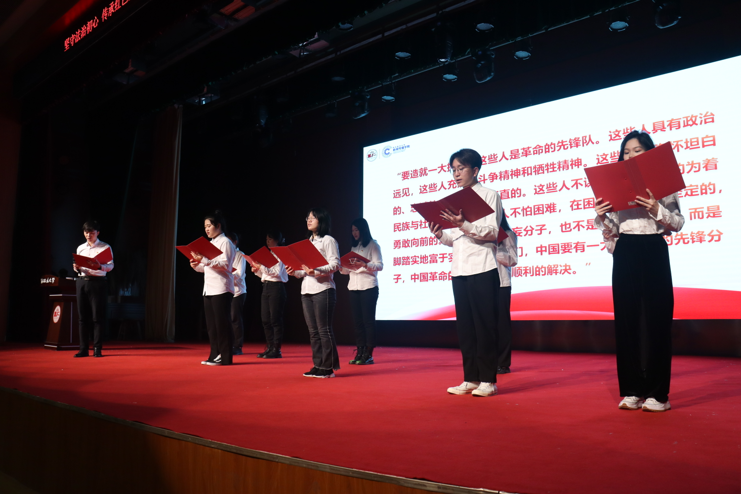 本科生第二党支部书记崔梁凡同志带领党员代表诵读毛泽东给陕北公学的题词:1937年10月23日,毛泽东主席为陕公写下了著名的题词:“要造就一大批人,这些人是革命的先锋队,这些人具有政治远见┅┅”时间跨过了整整84年,今天再读这段文字,我们仍然心潮澎湃,精神振奋,充满力量!