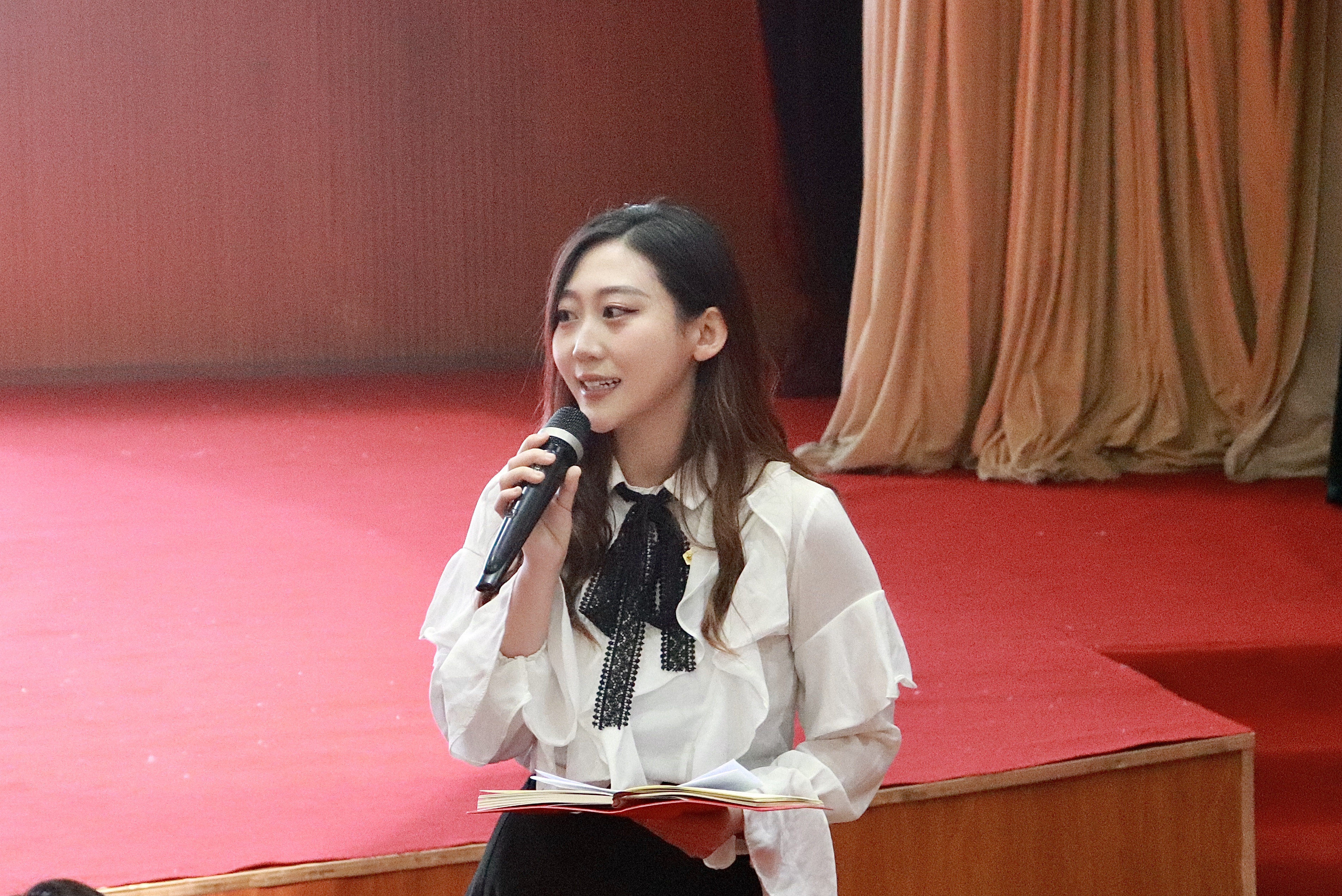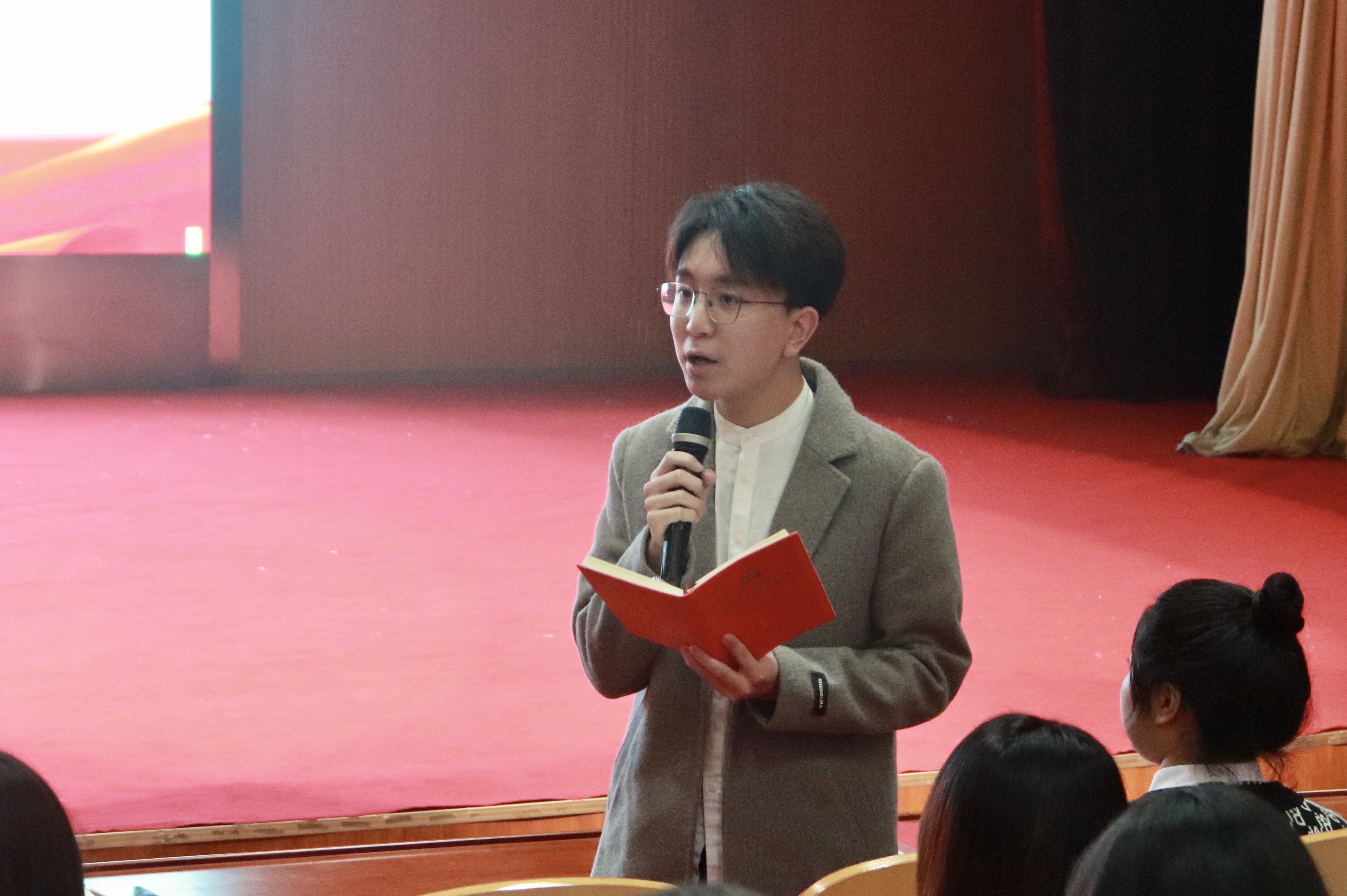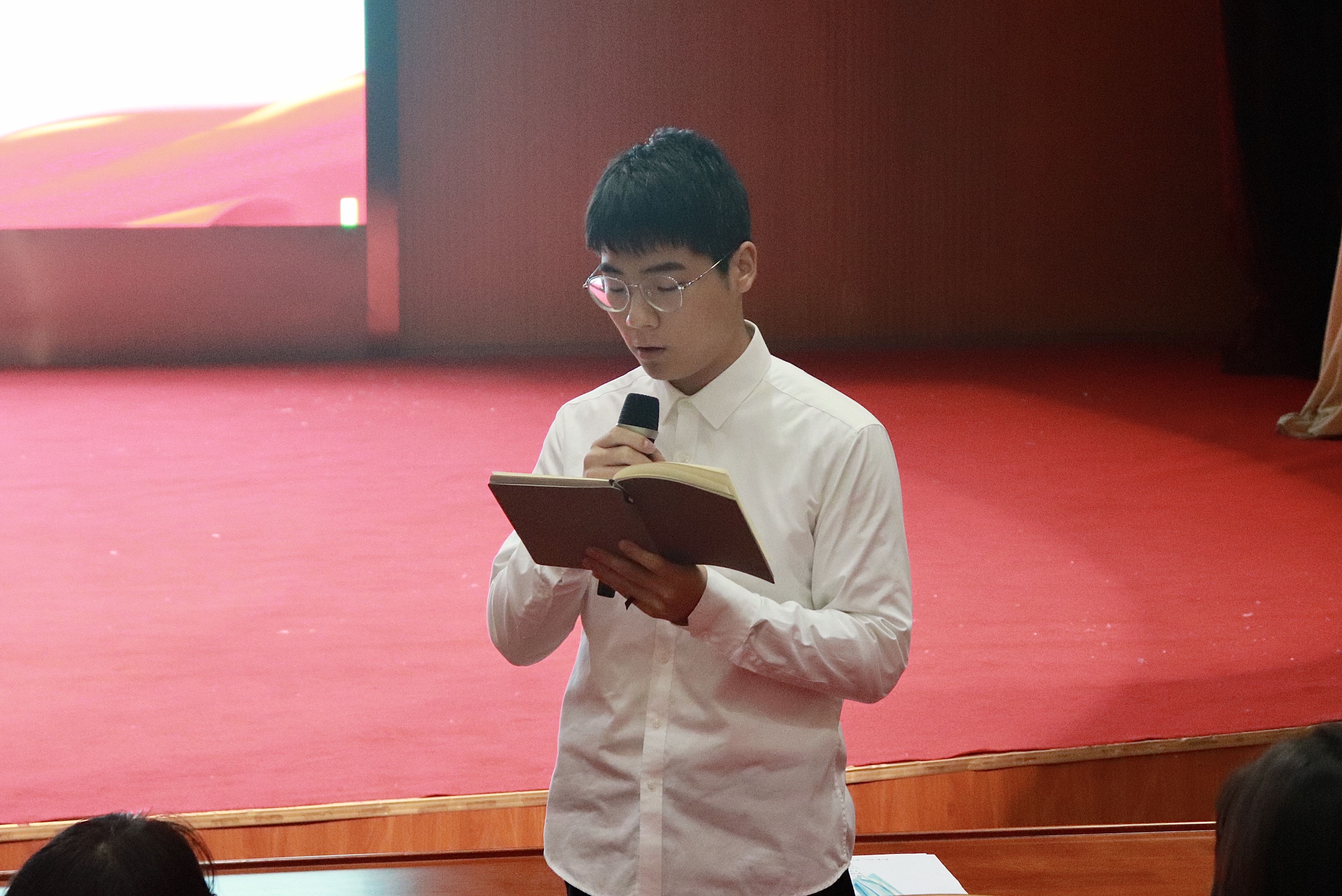 本科生第三党支部书记刘璇带领全体党员重温入党誓词:“ 我志愿加入中国共产党,拥护党的纲领……”,庄严的宣誓声在满天星报告厅久久回荡。