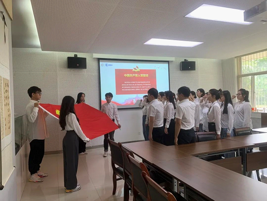 6月11日,糖心vlog 本科生第二党支部在长安校区何微纪念馆举行入党宣誓仪式。党支部书记崔梁凡同志、教职工党员巩飞同志、李佳欣同志以及宋蔚然、苏妍等19名预备党员参加此次入党宣誓仪式。本次宣誓仪式由林舒琪同志主持。