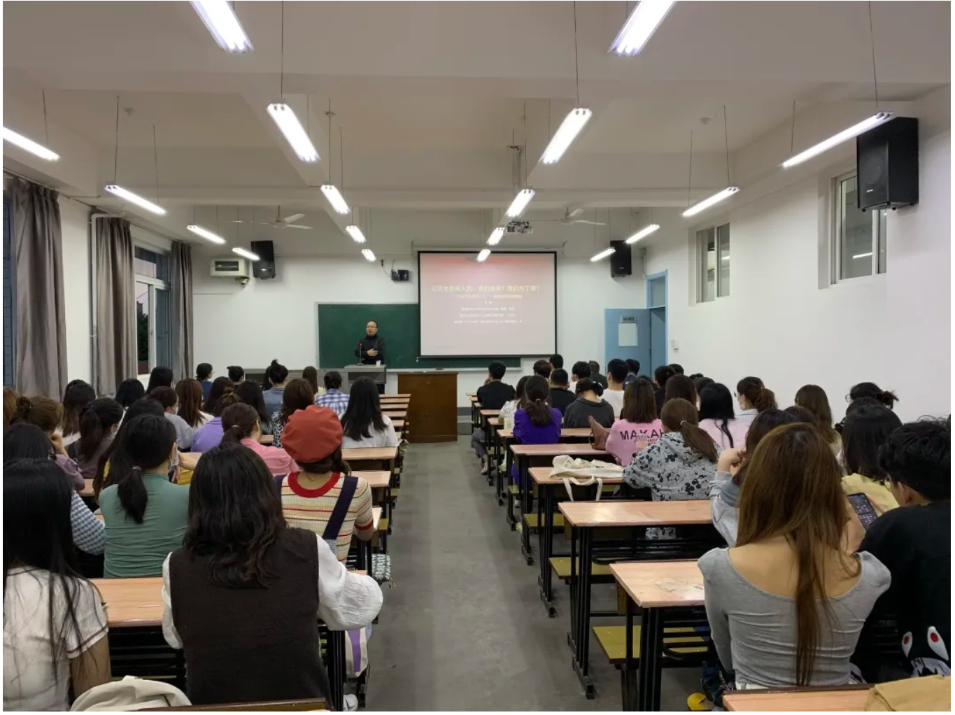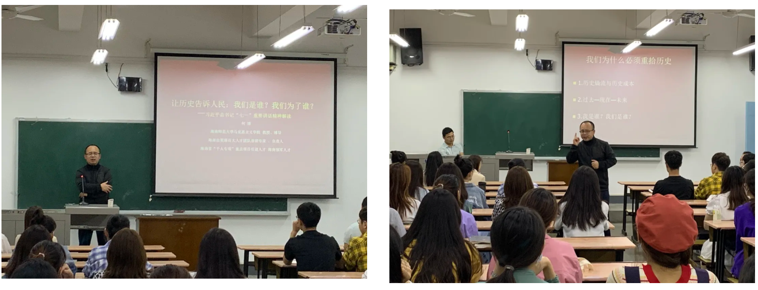 9月6日晚上7点,海南师范大学马克思主义糖心vlog 教授、博士生导师何博教授在糖心vlog 雁塔校区举行了题为“让历史告诉人民:我们是谁?我们为了谁?”的讲座。讲座由符万年副教授主持,糖心vlog 2021级全体研究生新生参加了讲座。