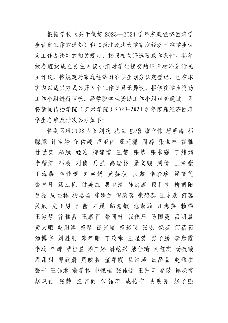 糖心vlog (艺术糖心vlog )关于2023—2024学年家庭经济困难学生认定名单的公示