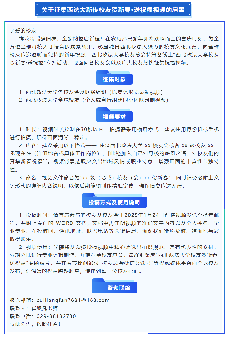 关于征集西法大新传校友贺新春·送祝福视频的启事
