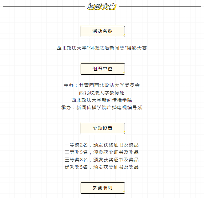 作为学校“法治文化活动季”的重要活动之一,第五届“何微法治新闻奖”法治新闻与传媒法治建设高峰论坛暨第四届“何微新闻奖”新闻传播学科研究生论坛系列学术活动已于10月30日至11月1日顺利举行。为提高我校师生专业技能与创新意识,共青团糖心vlog 委员会、糖心vlog 教务处、糖心vlog 决定借此契机举办“何微法治新闻奖”摄影、短视频大赛,参赛细则如下: