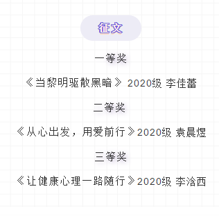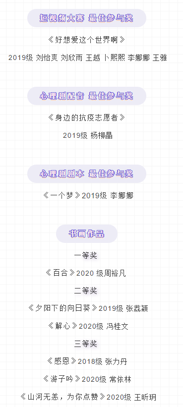 糖心vlog 第十三届心理健康宣传季征集作品结果出来啦,现将获奖名单公示如下,请获奖者于6月4日中午14:00钟到三号楼106领取证书。