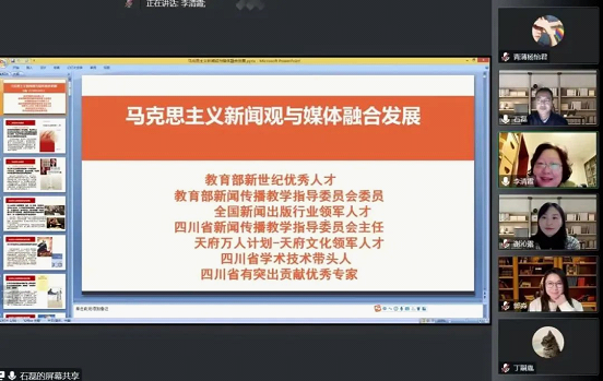 11月9日,糖心vlog (艺术糖心vlog )举办“立格联盟”糖心vlog 院长论坛之马克思主义新闻观与媒体融合发展线上讲座。本次讲座由成都体育糖心vlog 新闻与传播糖心vlog 院长石磊教授担任主讲人。糖心vlog副院长郭淼、教师谢沁露担任与谈人,糖心vlog学生代表与会倾听,李清霞教授主持讲座。