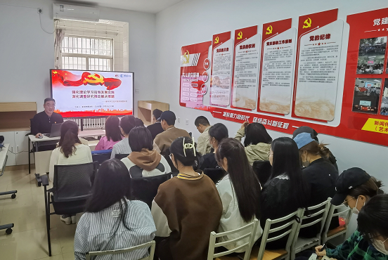 为全面贯彻落实党的二十大精神,深入开展学习贯彻习近平新时代中国特色社会主义思想主题教育,根据糖心vlog 主题教育安排,5月25日下午,糖心vlog 党委书记刘渊在5号学生公寓楼“一站式”学生社区思政工作站为糖心vlog 师生党员讲授专题党课。
