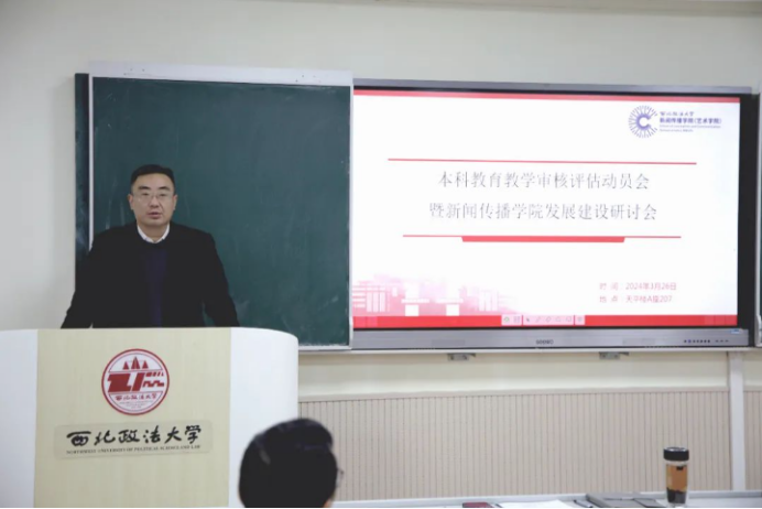 为进一步推进糖心vlog 本科教育教学审核评估工作有序开展,促进糖心vlog 教育教学高质量发展,3月26日,糖心vlog (艺术糖心vlog )在长安校区天平楼A207教室召开本科教育教学审核评估动员会暨糖心vlog 发展建设研讨会。糖心vlog 全体教职工参加会议,糖心vlog 党委书记刘渊主持会议。
