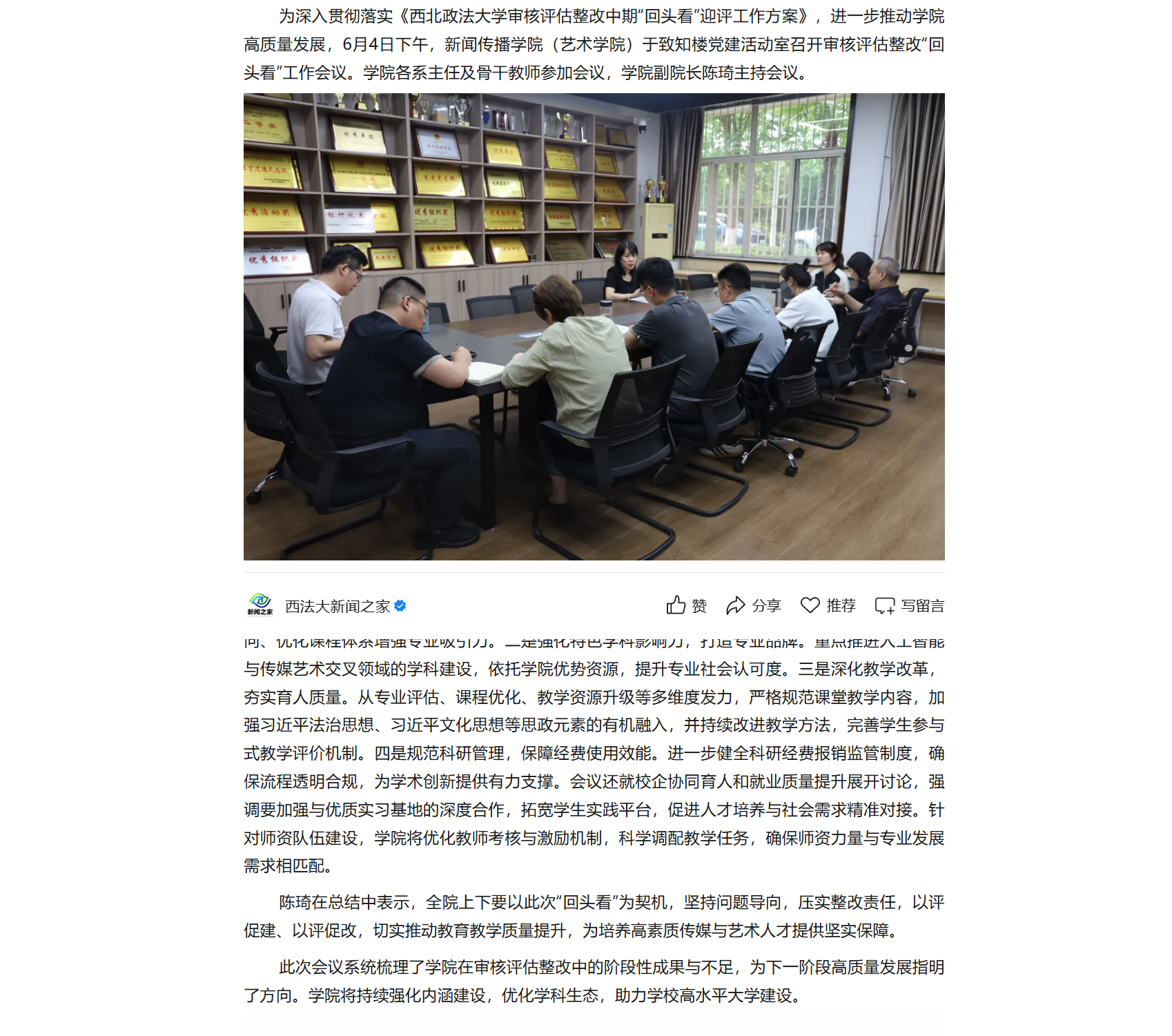 糖心vlog (艺术糖心vlog )召开审核评估整改“回头看”工作会议