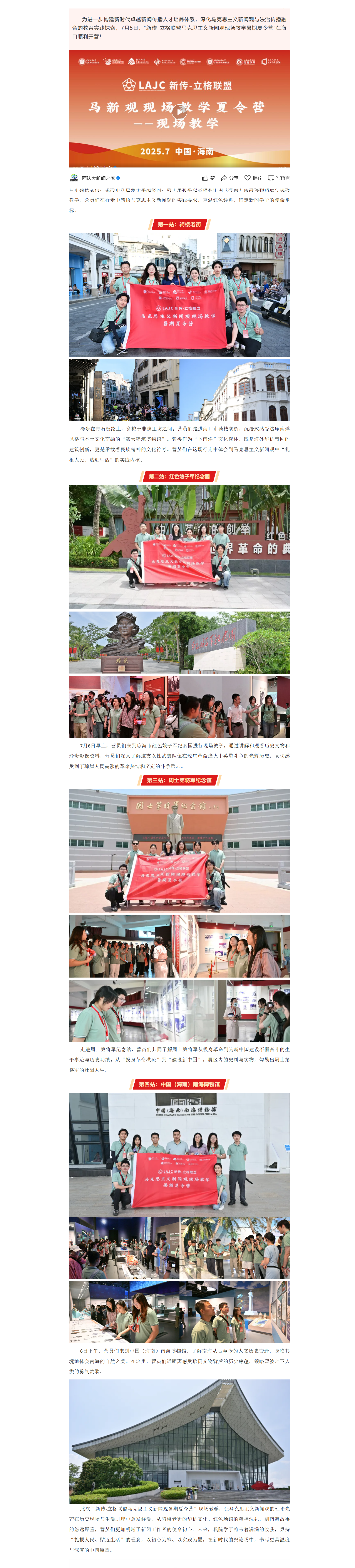 上一篇:现场教学② | “新传-立格联盟马克思主义新闻观暑期夏令营”探寻红色印记践使命!