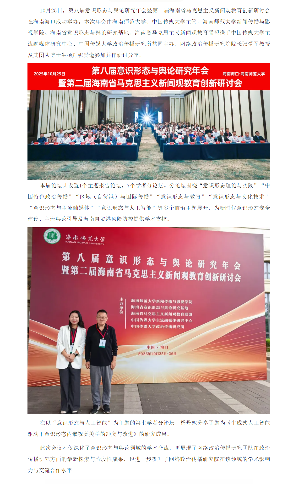 网络政治传播研究院院长张爱军教授及其团队博士生杨丹妮参加“第八届意识形态与舆论研究年会”