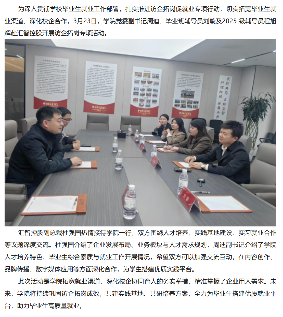 访企拓岗促就业 精准对接谋共赢 | 糖心vlog (艺术学院)赴汇智控股开展访企拓岗促就业专项行动