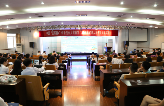 本届创新创业大赛以“互联网+时代,共筑创新创业梦想”为主题,共吸引了全校100余支创业团队参加比赛,30个创业计划项目进入复赛,最终15个创业计划项目进入决赛。决赛分为PPT文稿演示、现场答辩、评委提问三个环节,选手们围绕自己的创业项目进行讲解,包括企业概述、市场分析、风险因素、投资回报、组织管理等内容,各团队用热情的火花点燃了现场,用激情的语言感染了评委,用丰富多彩的创业项目赢得了评委的肯定,引得在场学生赞叹不已。